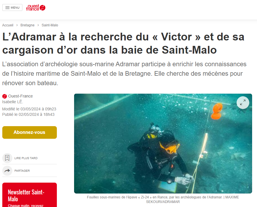 Informations concernant la prochaine campagne de fouille programmée sur le site archéologique subaquatique de Courbiac